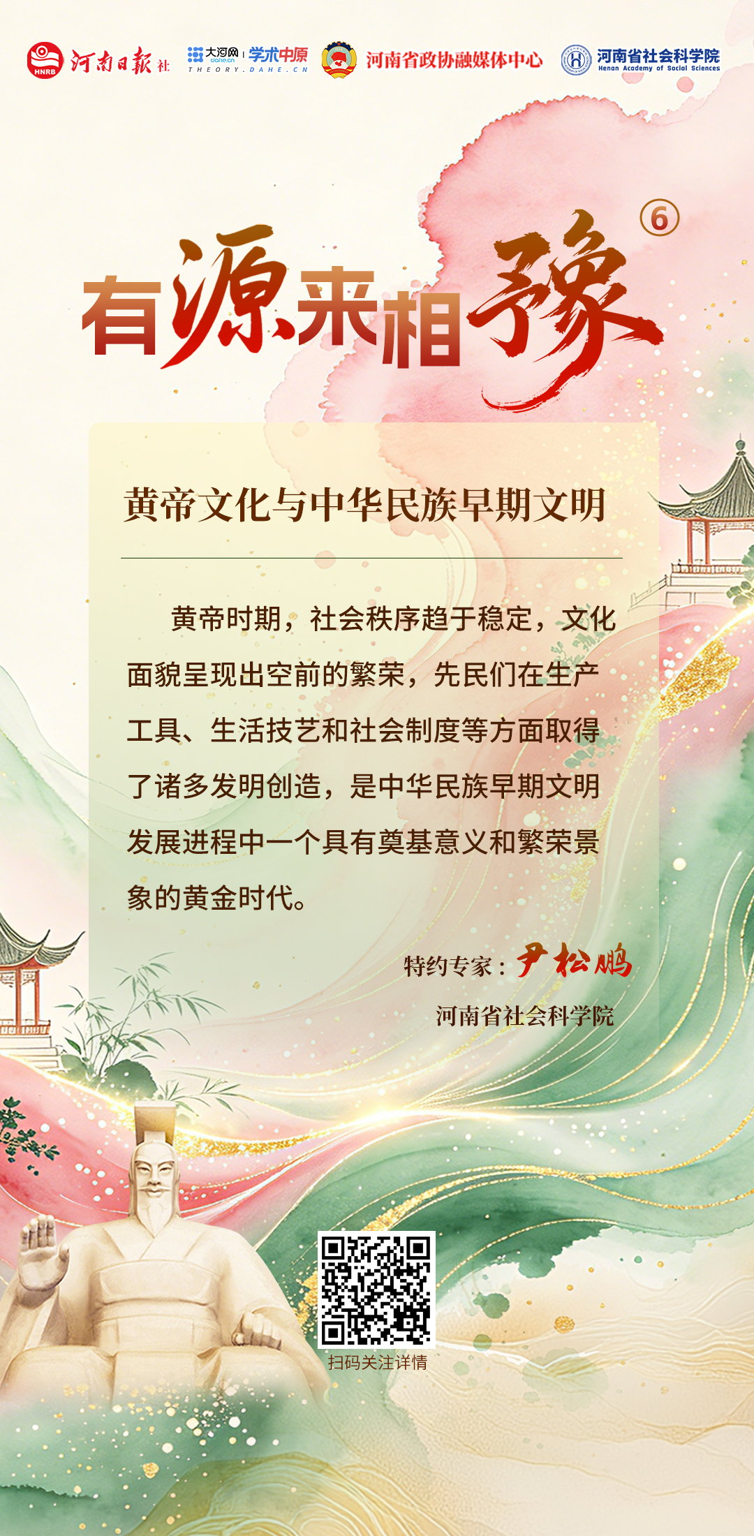 “三月三,拜轩辕”,寻根问祖来河南,有“源”千里来相“豫”。丙午年新郑黄帝故里拜祖大典即将启幕,河南省政协融媒中心、大河网学术中原、河南省社会科学院联合推出特别策划,邀请专家以历史为根基、以文化为核心、以时代为视角,系统梳理黄帝文化的内涵,深入阐释其时代价值,让黄帝文化在新时代焕发出更加持久、更具感召力的生机与荣光。