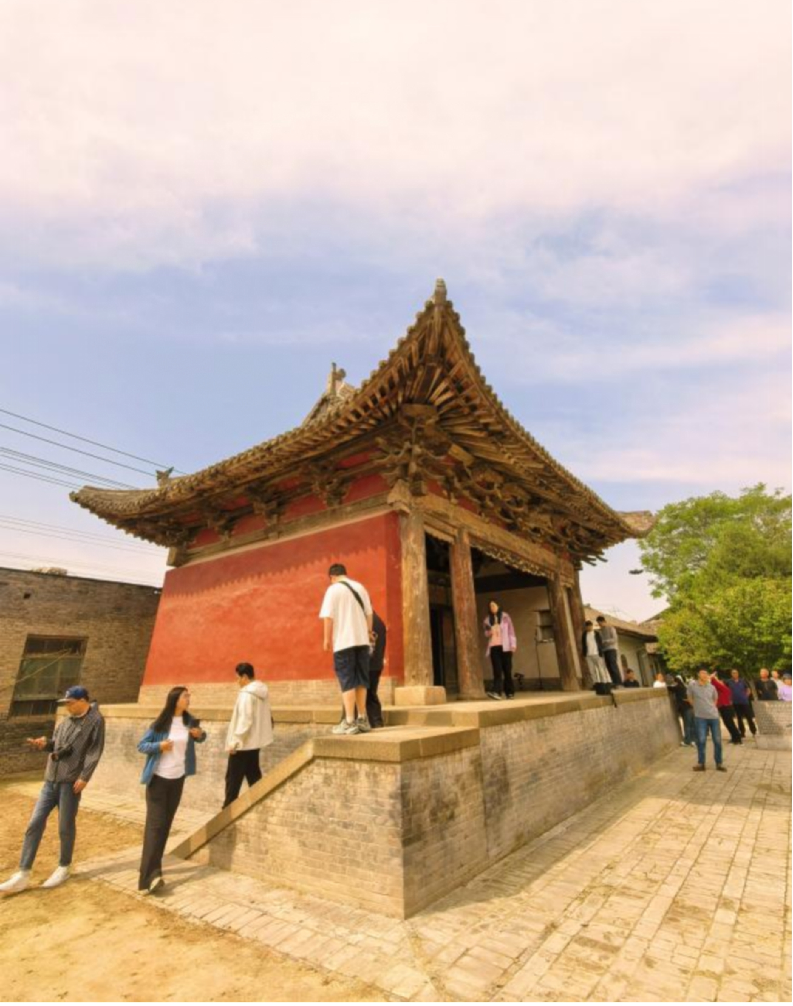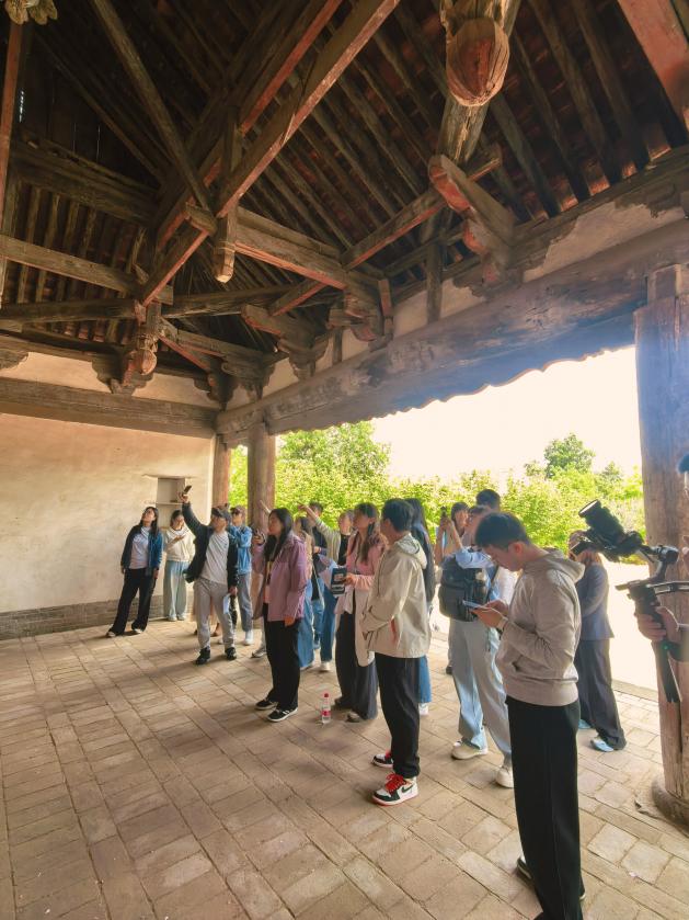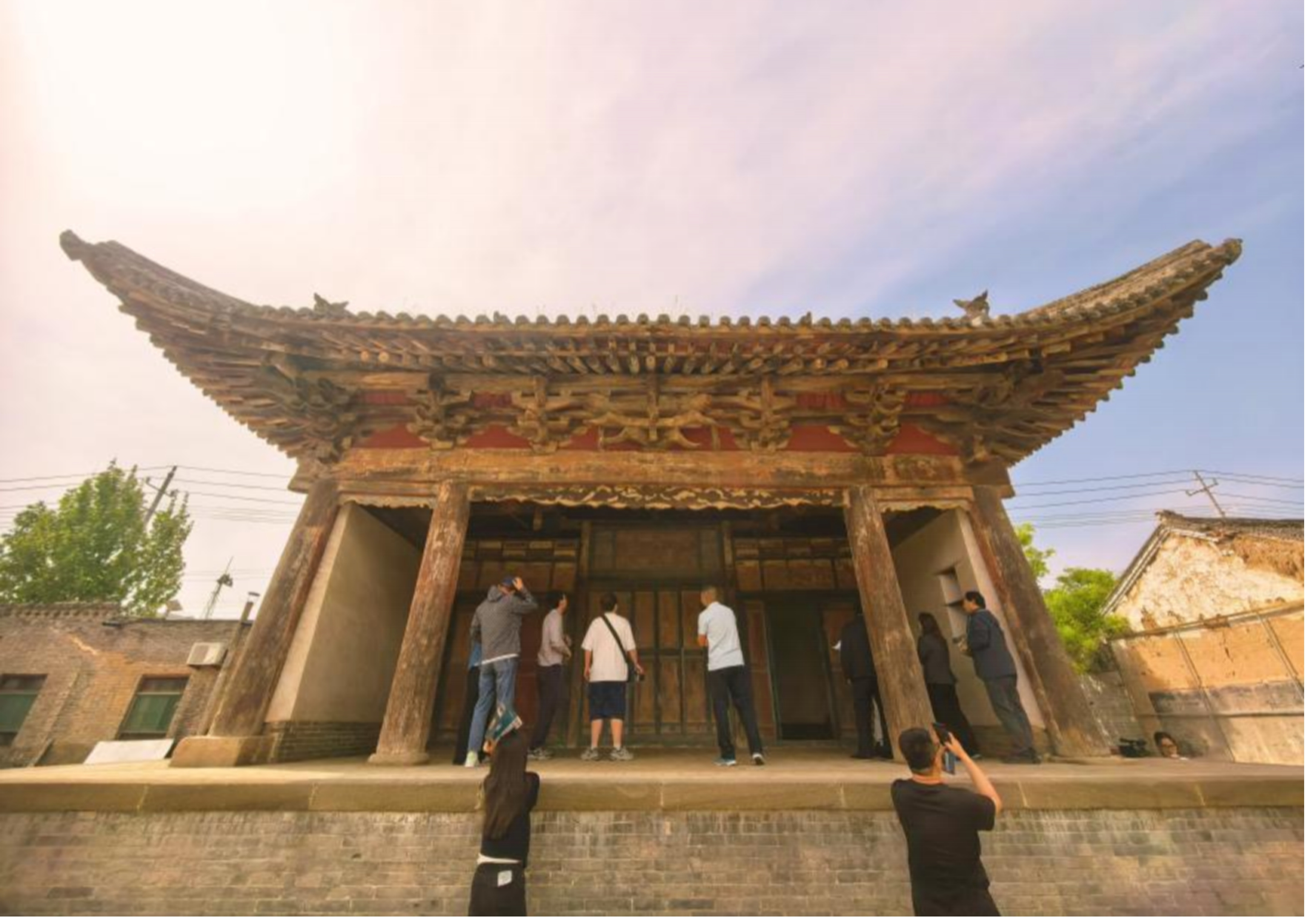 采风团首先来到的是永济遏云楼,它位于永济市卿头镇董村,始建于元至治二年(1322年),为全国重点文物保护单位,是研究元代建筑、中国古代戏台建制及戏曲声效设计的重要实物依据。