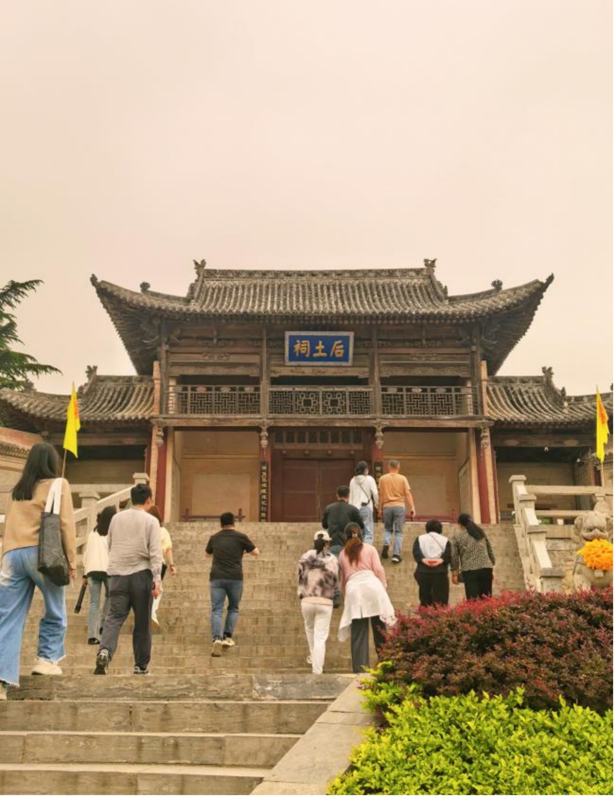 告别永济遏云楼,采风团来到万荣后土祠。后土祠地处万荣县西南,是华夏民族祭祀后土(地母)的发祥地,亦是宋代以前朝廷祭祀后土的本庙。汉武帝曾多次亲临祭拜,并留下千古名篇《秋风辞》。自汉武帝建祠始,先后有汉、唐、宋九位皇帝二十四次亲祀,被誉为“中华祖祠”,全国重点文物保护单位。这里一庙三台,呈品字形分布,不仅展现了当时独特的建筑创意,更是后土祠戏曲文化繁荣的生动见证。