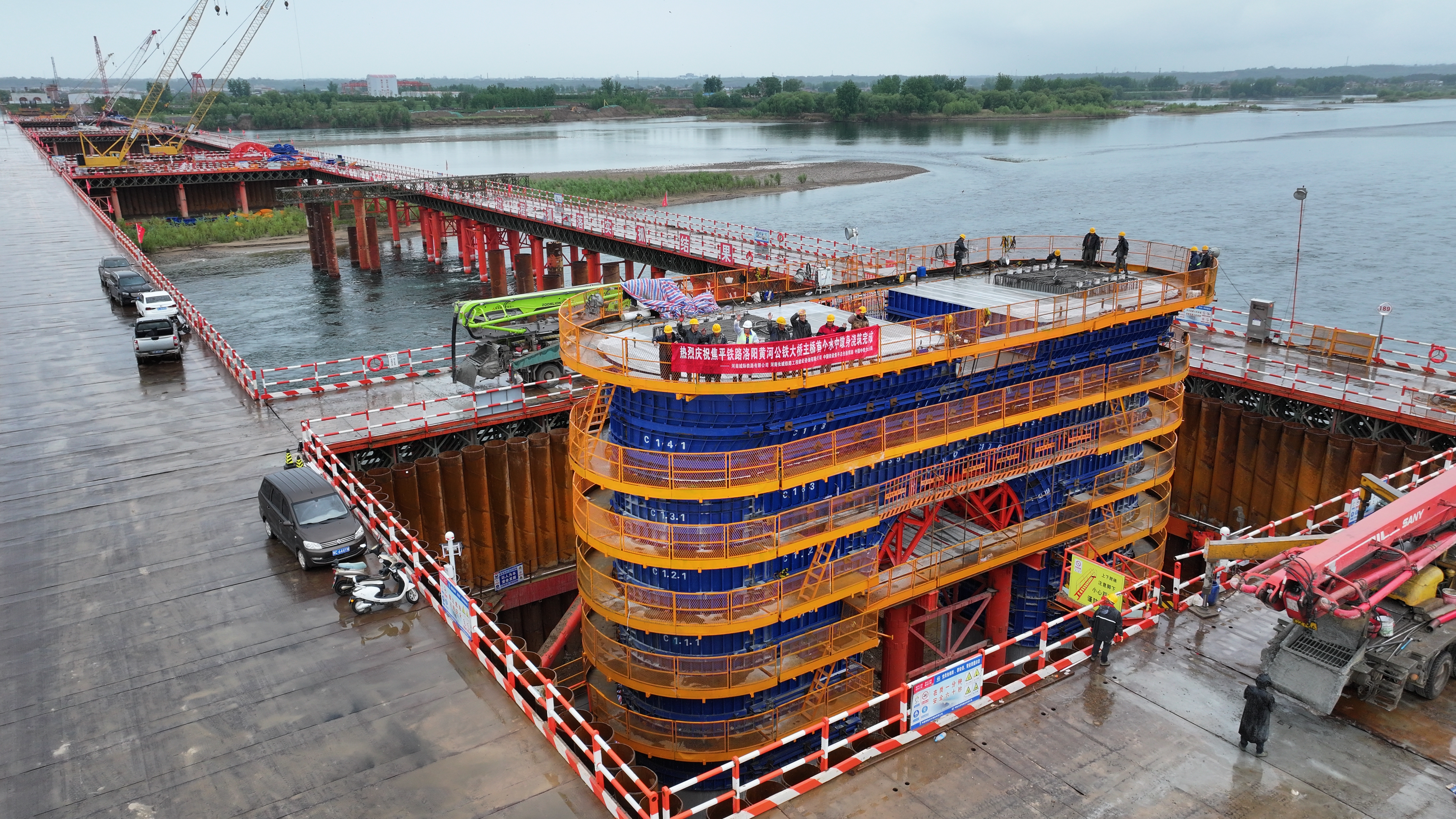 豫西交通再提速!焦平铁路洛阳黄河公铁大桥主桥首个水中墩顺利“出水”