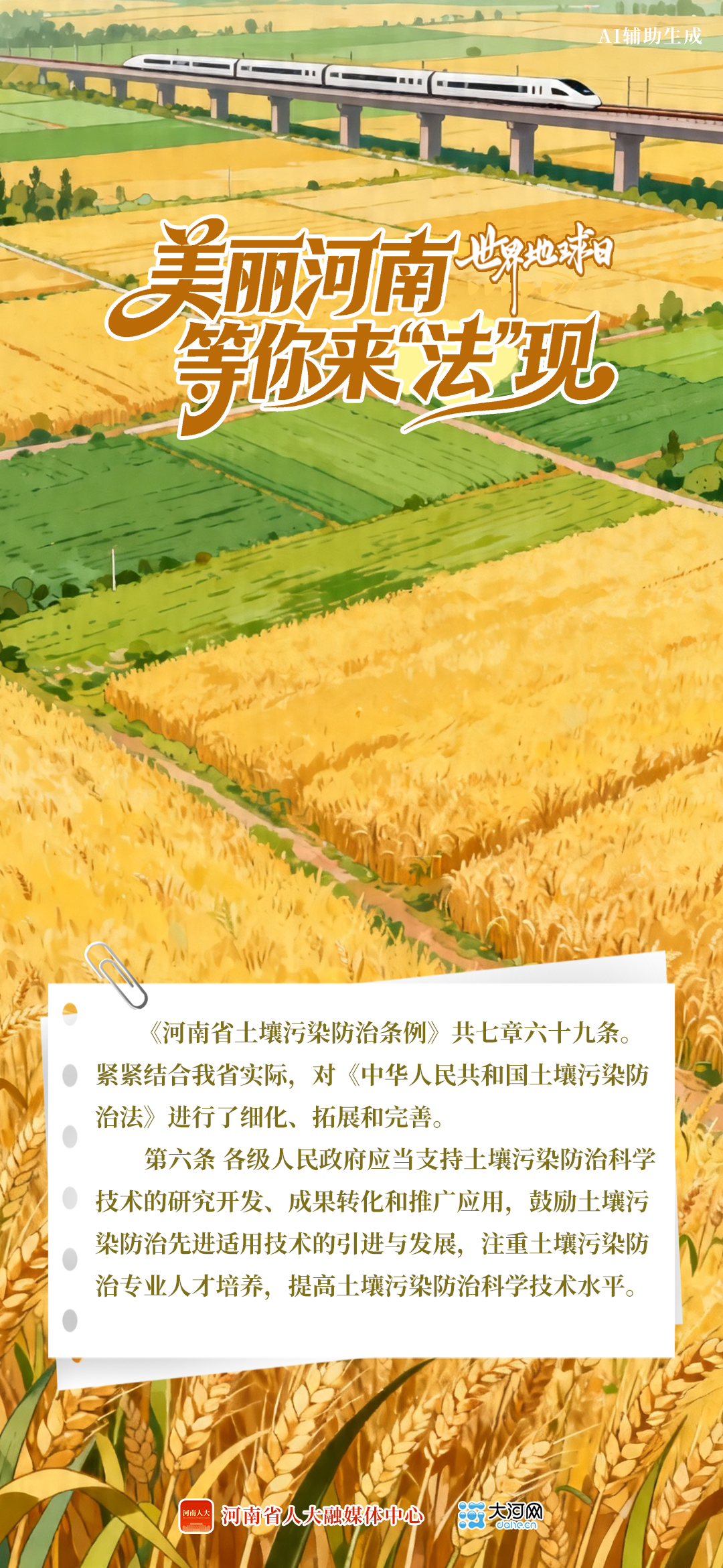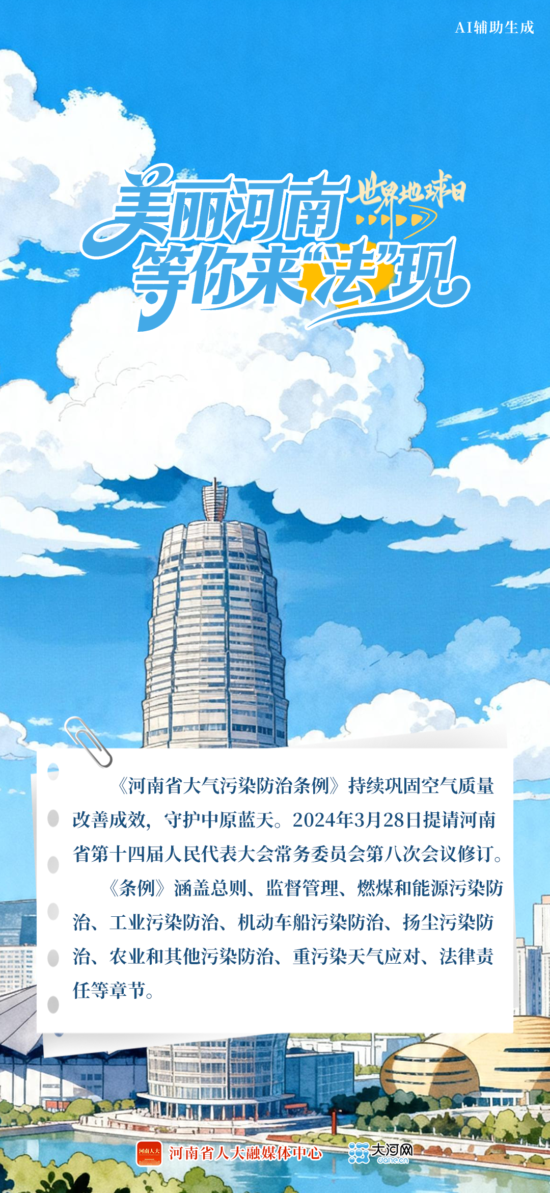 在河南,法治是守护生态的有力屏障。《河南省实施〈中华人民共和国黄河保护法〉办法》筑牢黄河流域生态防线,守护黄河安澜;《河南省大气污染防治条例》严格管控污染排放,让蓝天常在;《河南省土壤污染防治条例》精准守护中原粮仓的土地安全……以法治力量守护绿水青山,美丽河南等你来“法”现!