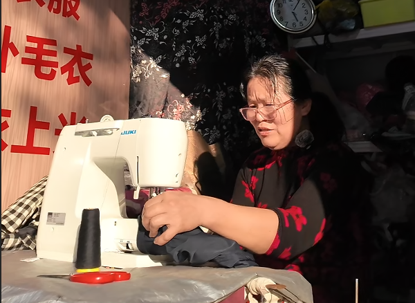 有了固定场所,魏正莲立刻换了电动缝纫机:“不用脚踩,自动穿针,晚上还有小灯。”效率翻倍,一天最多接五六十单。她还学会了修羽绒服、做衣服、缝窗帘。小罗子也一样,工具不用再搬来搬去,下雨天也不怕耽误活计。