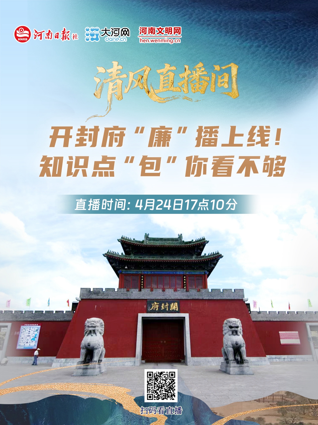 大河网讯 青砖黛瓦藏古韵,一府清风润人心。4月24日下午5点10分,大河网全新推出的首档廉洁文化主题直播栏目《清风直播间》,第一期将走进开封府,循着历史足迹,解读宋代官制典故,深挖藏在亭台楼阁、碑刻器物中的廉政文化内涵。