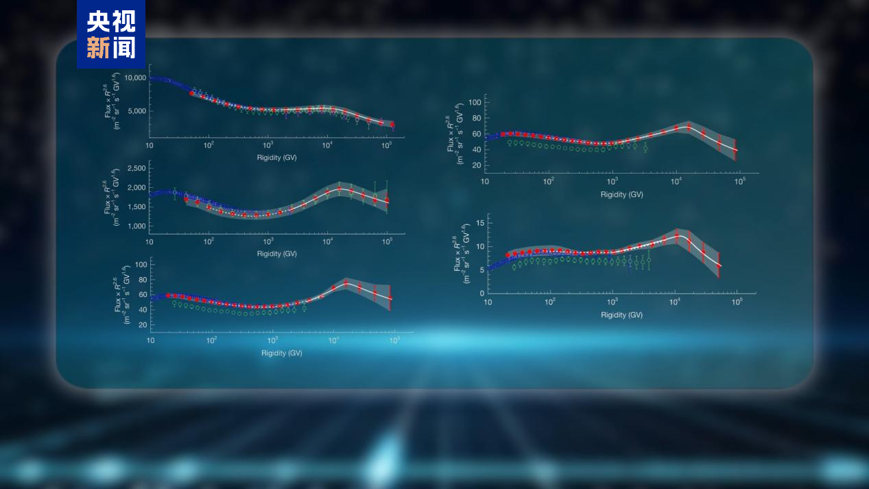 我国领衔的国际科研团队依托“悟空”号强大的探测能力,精确测量出了质子、氦、碳、氧、铁这5种宇宙射线中最常见粒子的能量分布,首次直接观测到它们在高能段都出现了一致的“鼓包”结构。其中,碳、氧、铁三种粒子的最高有效测量能量,比以往提升了近10倍。通过进一步研究,团队发现这个特殊“鼓包”出现的位置与粒子的电荷成正比。