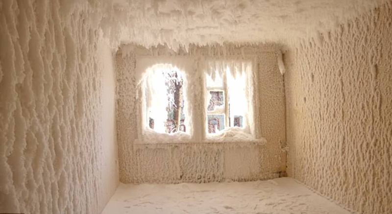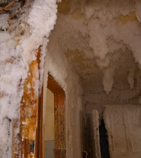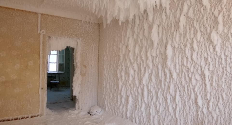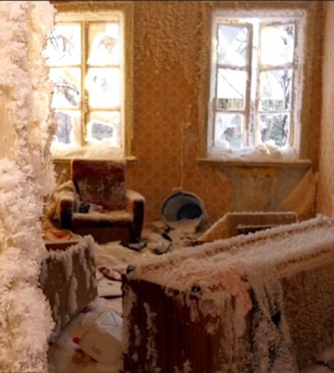 1月,叶卡捷琳堡气温骤降至零下17℃,一间废弃的房屋因为水管炸裂,导致每个房间都被冰层覆盖。裹着冰的家具、堆满雪的楼梯……银装素裹的屋子犹如一座神秘的冰雪宫殿。