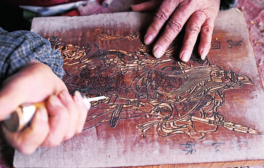 “胡子最不好刻,要圆滑,还要一刀下来,刻这一个版大概需要十几天。”