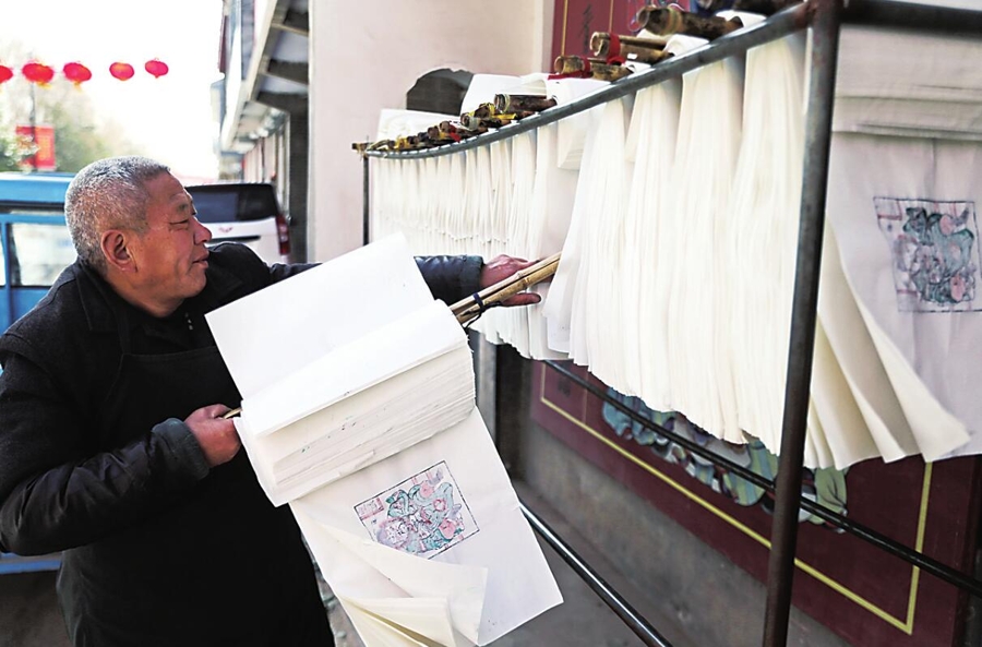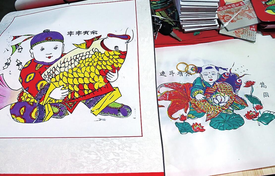 “我都干了近20年了,这样的技艺都是家传的,从小学。现在喜欢木版年画的年轻人也不少,来学的也不少,去年还有一个外国留学生来学了一阵子。为了更好地传播朱仙镇木版年画,我们还提供教学版。现在的朱仙镇木版年画,不仅仅是年画还是一种工艺品,可以做挂画、装饰品等。另外,我们在网上也开了网店,网络销售的收入能占到总收入的60%。现在比较忙,过年了,很多人都在订购年画,如果你想私人定制,就得提前两三个月预定,刻版、印刷、晾晒,其中晾晒以阴干最好,所以比较费时间。现在我们这个店一年的收入大概十几万吧,顾得住。”白院长很高兴,“最重要的是传承了中国的传统工艺,这才是最关键的。”