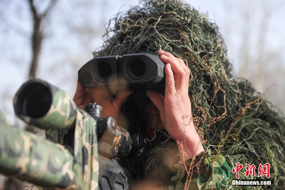 一名狙击手在据枪瞄准。袁浩翔 摄