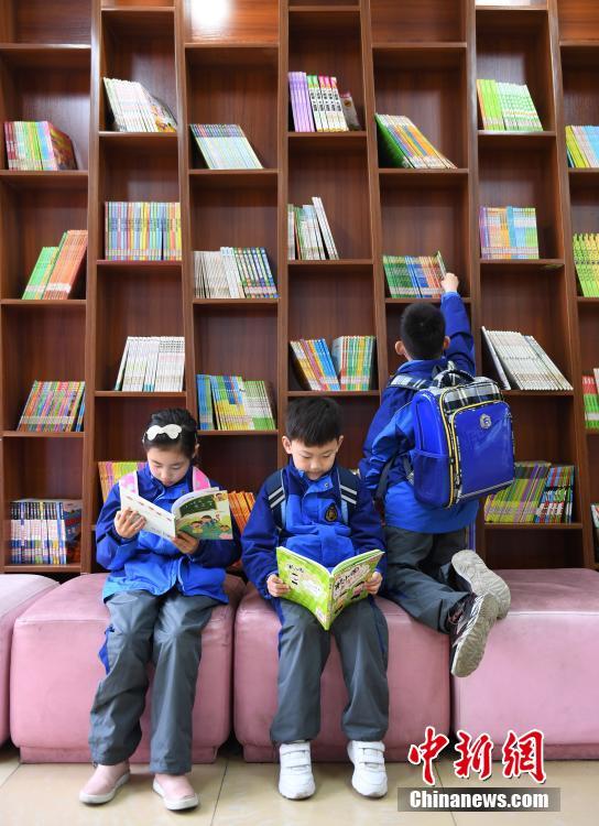 3月5日,三名浙江杭州的小学生正在校园内的阅览室里看书。近日,浙江省在中国率先实施推迟小学早上上学时间,要求一二年级学生最迟到校时间不得早于8点,上课时间不得早于8点30分,以此保障学生充足的休息时间,促进其身心健康,提升学习效率。