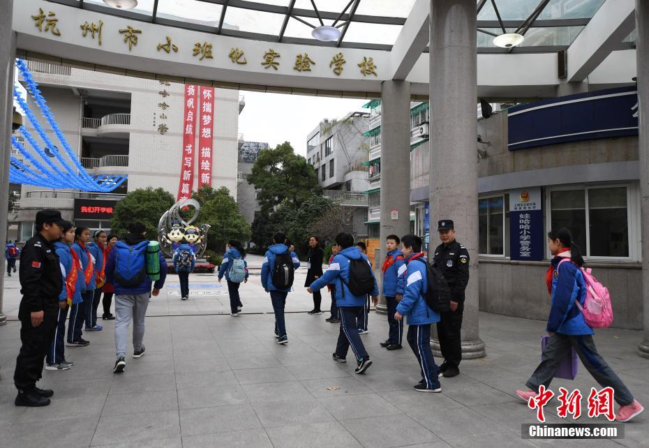 3月5日,浙江杭州的小学生正在步入校园。近日,浙江省在中国率先实施推迟小学早上上学时间,要求一二年级学生最迟到校时间不得早于8点,上课时间不得早于8点30分,以此保障学生充足的休息时间,促进其身心健康,提升学习效率。