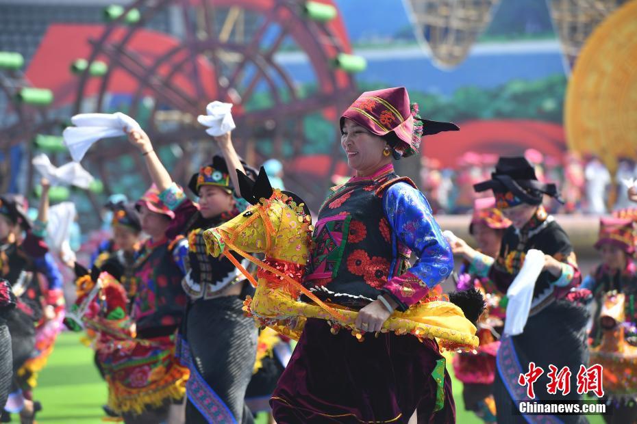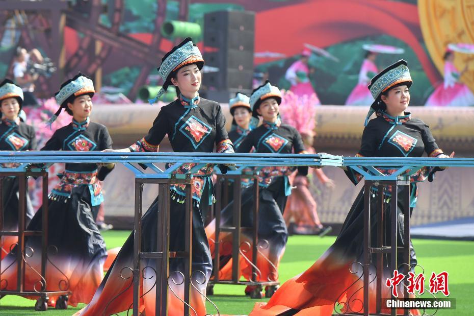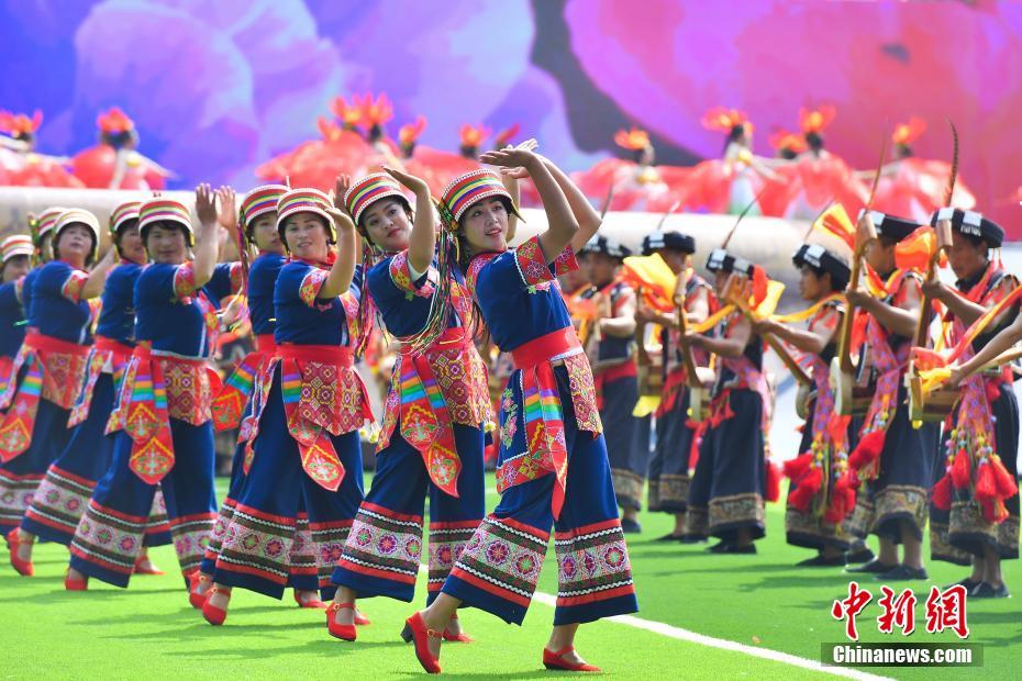 4月1日,演员在庆祝大会表演。当日,云南省文山壮族苗族自治州建州60周年庆祝活动举行。文山壮族苗族自治州是著名的三七之乡。