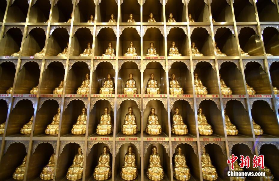 5月17日,记者探访闽南千年古刹――平和三平寺。三平寺地处福建漳州市平和县文峰镇境内,为晚唐高僧杨义中禅师于唐会昌五年(公元845年)创建,至今已有1173年历史。三平祖师文化影响深远,信众遍布36个国家和地区,在海内外的分庙达350多家。图为海内外信众捐赠的千尊铜佛像。中新社记者 吕明 摄