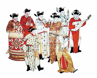 唐玄宗自幼精通音律,热爱歌舞表演,他令人在太常寺之外单独设立了管理和教授音乐的教坊——梨园。唐玄宗组建了一个歌舞艺术团,在管理朝政之余亲自教大家唱歌跳舞。他还亲自挑选了30名15岁以下的儿童,手把手地教他们学习声乐和表演。后世的戏曲演员都尊唐玄宗为祖师爷,戏曲演员也被称为“梨园弟子”。
