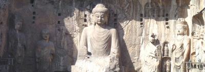 梵语“卢舍那佛”即光明普照、光辉普遍之意,是源自古代日神崇拜的太阳神信仰而来。虽然如今人们已经无法真切地看到当初大佛被粉饰一新、受人顶礼膜拜的情景,但是仍可以推想出当初皇家贵族在此举行隆重祭礼的场面。无疑,这里的一切所表现的是大唐盛世的伟大和繁荣。