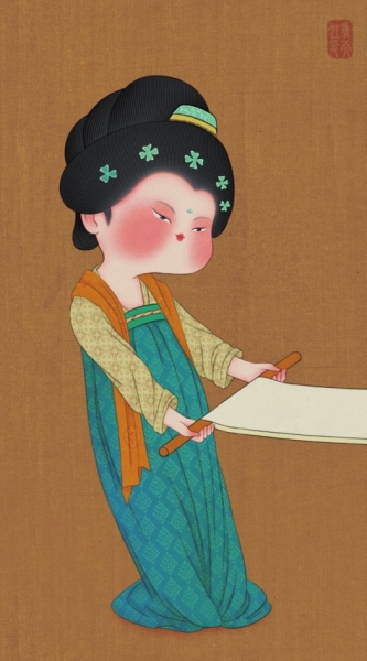 元和四年时,白居易又描绘了一种新妆扮“时世宽妆束”:在八字啼眉的基础上,不用红粉妆,却用赭涂面,乌膏注唇,圆鬟高髻,衣裙宽大。男人们往往看不懂这潮流的风向,元稹就曾直斥“怪艳”,说“近世妇女晕淡眉目,绾约头发,衣服修广之度及匹配色泽,尤剧怪艳”。