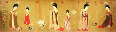 “小腰丽女夺人奇,金鞍少年曾不顾”,唐初诗人吴少微笔下的《怨歌行》里,这个“小腰丽人”应该与今天的“A4腰美女”有一拼。唐初“以瘦为美”的另一例证是,隋末唐初著名画家阎立本的名作《步辇图》,图中为李世民抬辇、执扇、撑华盖的仕女们,腰身也算纤细。