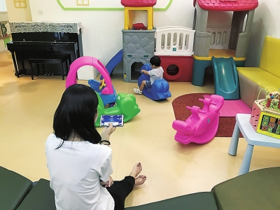 孩子玩耍时,家长在一旁玩手机。大河报·大河财立方记者朱哲摄影