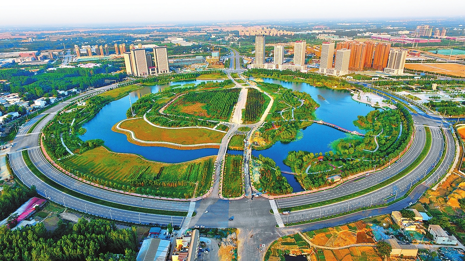 许昌市芙蓉湖一泓清水,景色醉人。芙蓉湖作为许昌市水系连通工程试蓄水的第一站,上游可接纳清泥河来水,下游又为鹿鸣湖等水系供水,承担着承上启下的重要作用,是许昌市打造生态宜居城市的重要环节。5年时间,在一片荒草地上平地起新湖,展现了现代化城市的许昌发展速度。