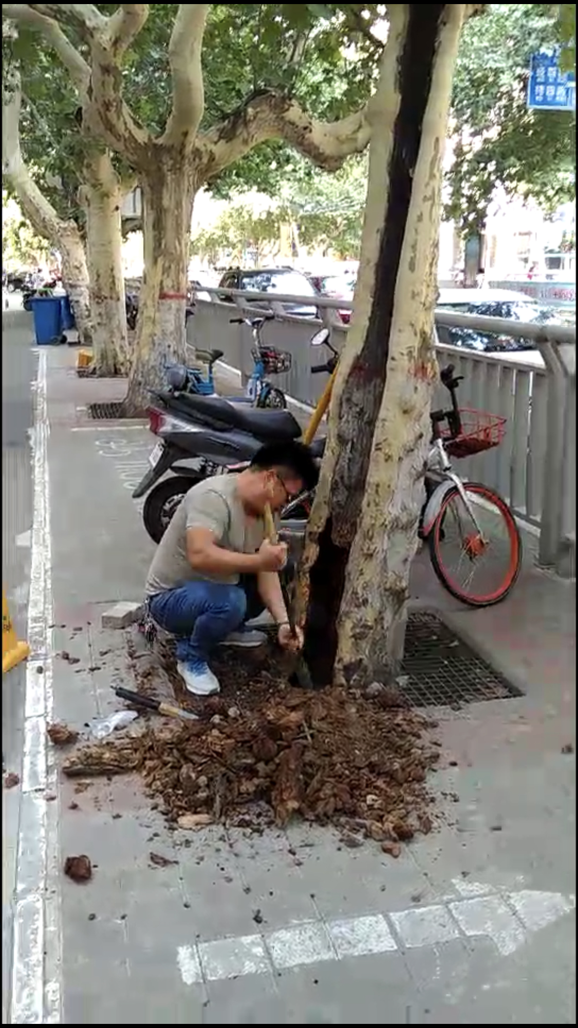 一条路上出现了十余棵空洞树