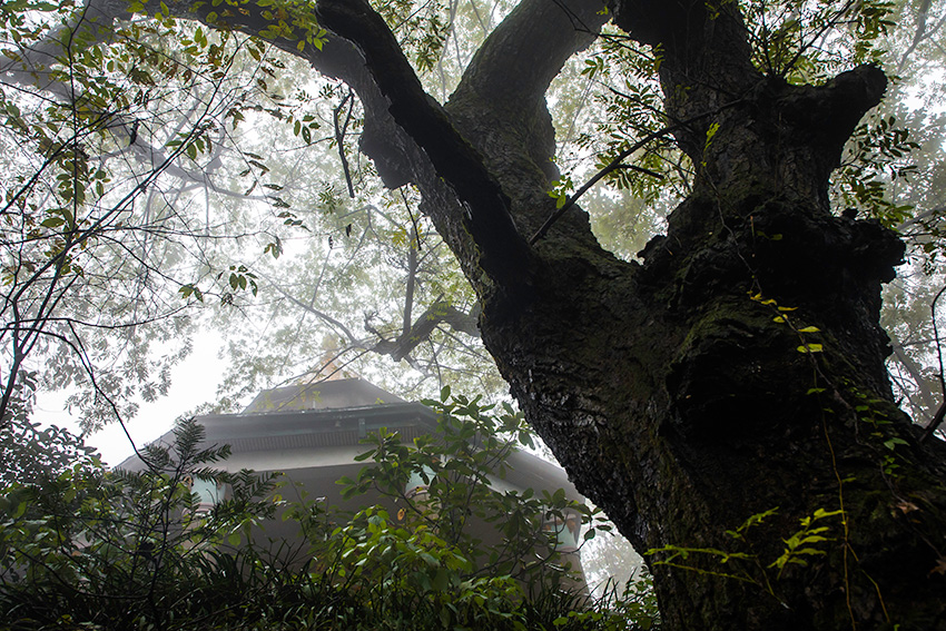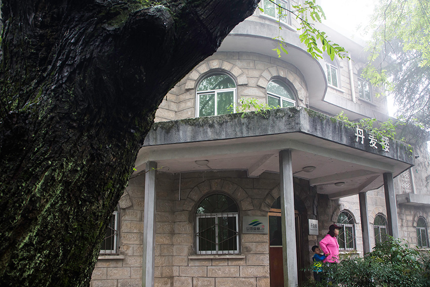 1903年至1949年间,鸡公山的万绿丛中、秀峰溪旁先后建起了500余幢别墅、“洋房” 。如今,这里仍保留有109栋近代建筑和10处构筑物。(古树相拥的马歇尔楼)