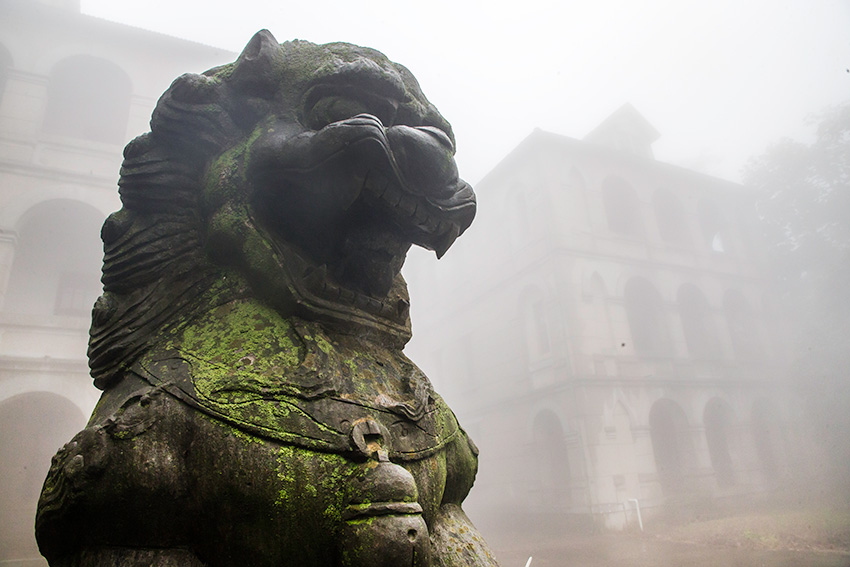 鸡公山,曾是中国四大避暑胜地(庐山、北戴河、鸡公山、莫干山)之一。1902年,卢汉铁路信阳至孝感段通车,美籍传教士李立生等人入山探奇,被这里秀美的景色迷住。而后,他在西方报纸上大肆宣扬这里景色幽雅、气候凉爽,使在华西人闻风而动,纷纷来这里置地建房。(美国楼前矗立的中国雄狮很威武)