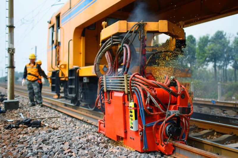 ▲作业人员通过移动闪光焊轨车焊接钢轨