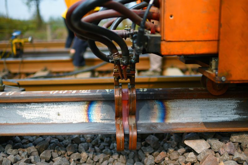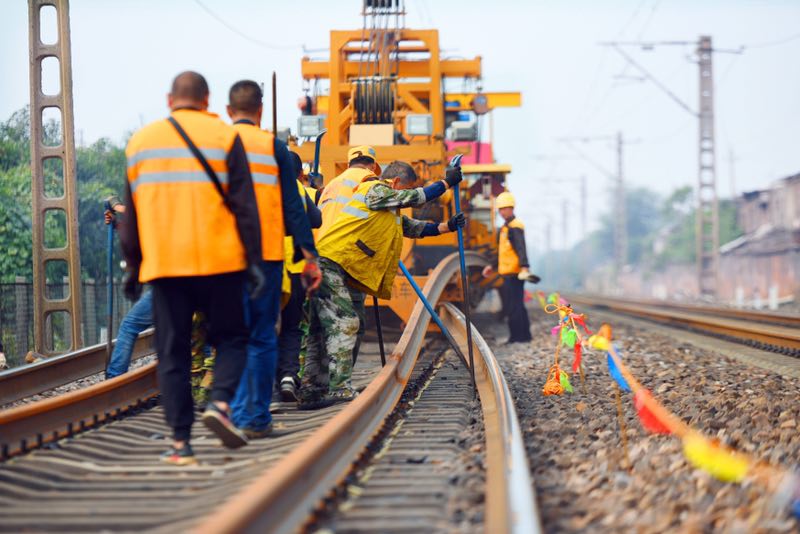 据此2公里开外,还有一组作业人员在车间技术员赵俊超的带领下进行着钢轨焊接作业,现场炉火吐艳、钢花飞溅。“我们正在为明天的换轨施工‘备料’。”据赵俊超介绍,换轨施工属于模块化作业,总体可分为备新轨、换钢轨、收旧轨等项目,“因运输限制,新运来的钢轨每根总长为500米,还需要使用YHG-1200型移动闪光焊轨车将其一根根焊接起来,以此实现线路无缝化,这也是当下列车运行中很难再听到‘咣当咣当’声响的秘密所在。”