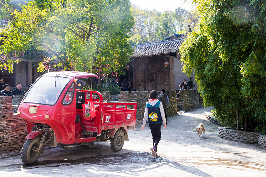 冉家村,是该县精准扶贫示范村。全村88户人家中,曾有建档立卡贫困户58户。近几年,该村立足地理位置、自然环境、特色文化三大旅游产业发展优势,全力推进旅游产业、特色农业、文化产业的深度融合,把这里打造成了旅游带动性的精准脱贫样板村。(村边建起花灯戏主题文化广场 )