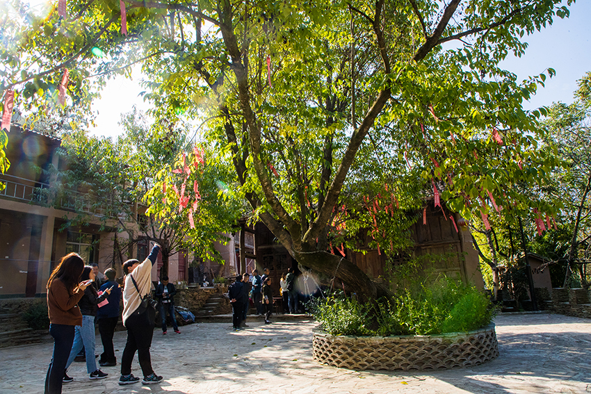 当地干部介绍说,发展乡村旅游使村里很多人们脱贫,今年全村贫困户只剩6户。一名村民说,现在村民大都有两套房子,一套在集镇上,一套在村子里。过去村子穷条件差,很多村民搬下了山,如今纷纷返村办起了农家乐。(王天定 文/图)村里有棵百年树连香树
