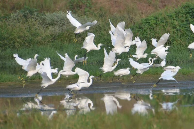 据了解,有关专家在南阳的张衡大桥、丁家坟河流保护保育区、莲花温泉科普宣教区监测到,有大量的小鷿鷈、斑嘴鸭、红骨顶、白骨顶、凤头䴙䴘、苍鹭、秃鼻乌鸦等鸟类聚集,特别是莲花温泉科普宣教区湿地景观多样,水面开阔,水生植物丰富,浅滩范围大,鸟类数量众多。目前,随着南阳市生态环境的提升,相信在不久的将来,在白河之畔,在鸭河之泽, “落霞与孤鹜齐飞”的如诗美景将呈现在南阳人们的眼前。