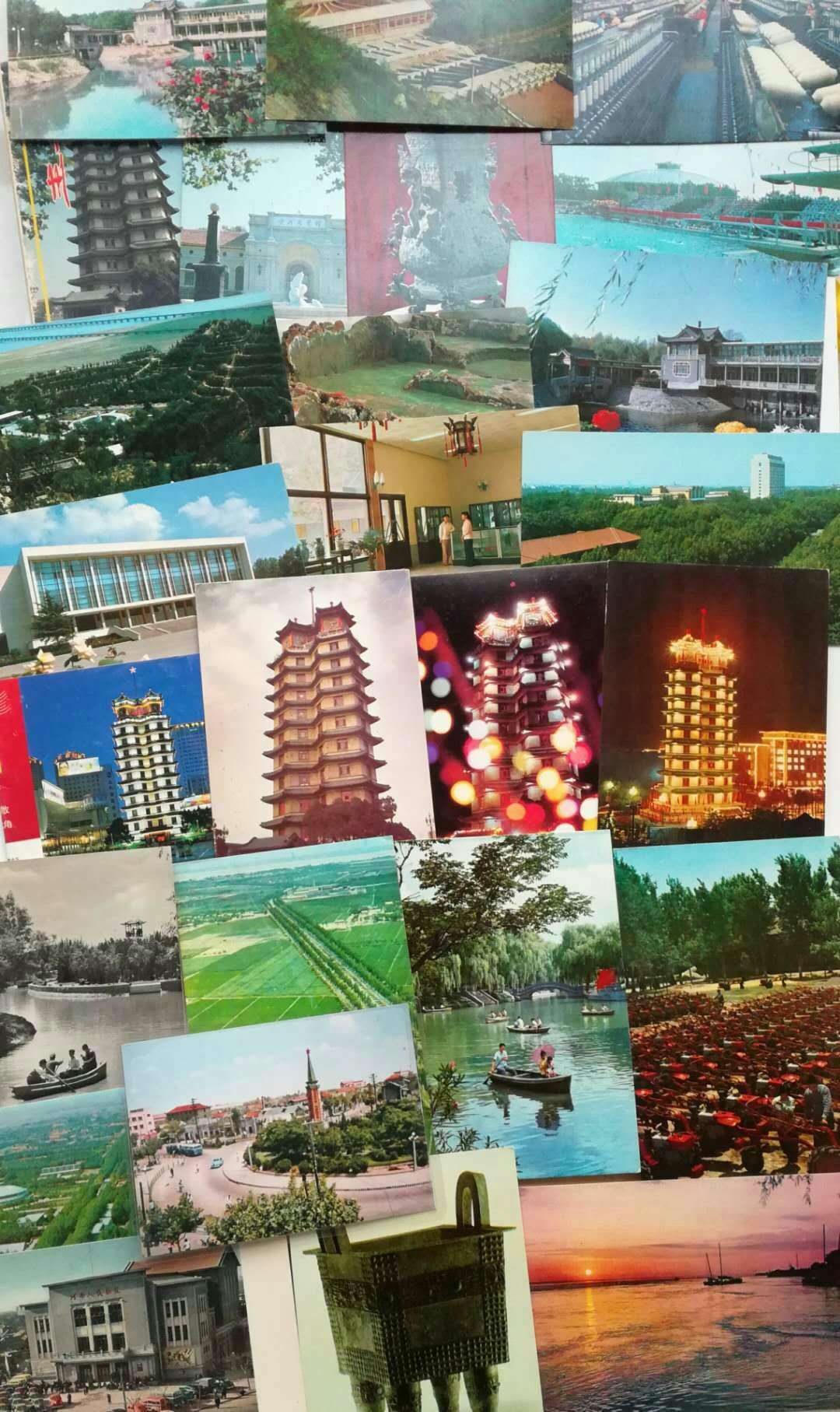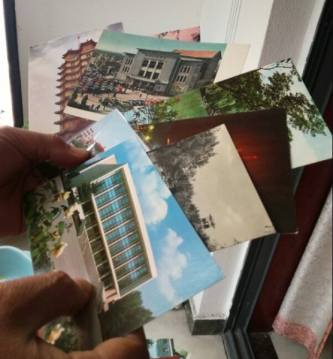 这次,他又拿出一个明信片系列收藏。这组明信片,共三十多张,时间跨度是上世纪五十年代至上世纪八十年代。