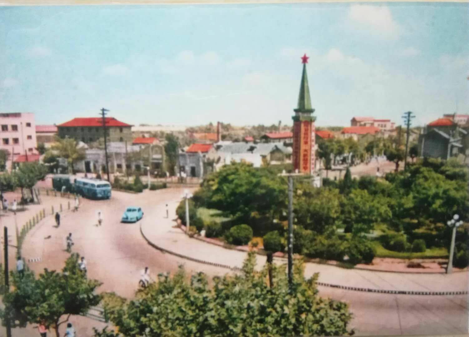 这些明信片里,有一张是上世纪五十年代二七广场的照片,你看二七塔当时还是一座苏式木塔,二七广场中间是个圆形的街心花园。