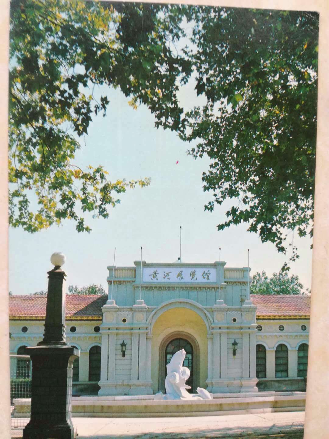 还有一张明信片上印的是黄河展览馆的照片,它座落在河南省人民会堂南侧,背靠紫荆山公园。王怀民曾经参观过这个馆,里面以图片、实物、模型、电影等多种形式,生动、形象、系统地介绍了黄河的概况和治理黄河取得的成就。
