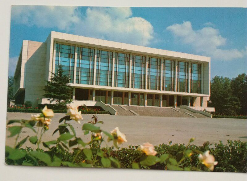 这张明信片上印的是河南人民会堂落成不久的照片,它结构紧凑,造型完整,朴素、简洁、明朗。当时,人民会堂周边没有广告牌,也没有如今的喧闹。