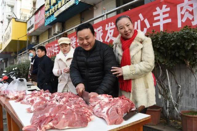 郑州市国基路与丰庆路交叉口太康烤全羊店门口,"羊肉哥"孙合理和妻子刘晓爱派送的一份新年礼物