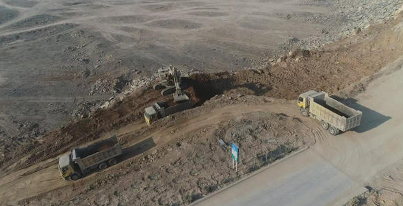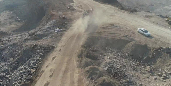 洛阳市G310国道与二广高速交会处的绿化工程,现场数台大型机械正在进行土石方作业,没有任何防尘降尘措施,运输车辆疯狂行驶、带土上路,工地区域狼烟动地、粉尘弥漫。
