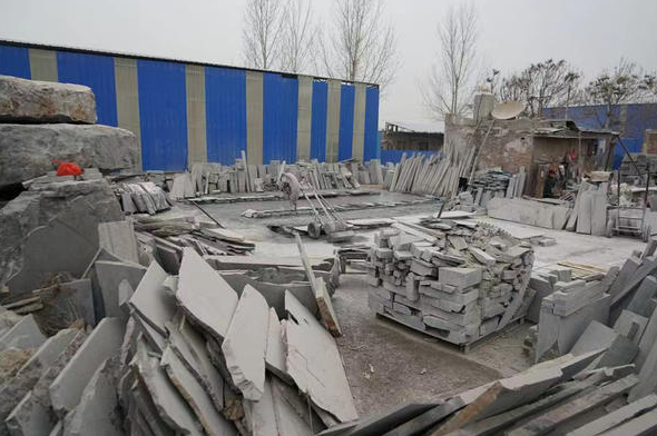 G207国道偃师市府店镇境内、营君路沿线区域耐火材料和石材加工"散乱污"集群,企业数量多、环境管理差,物料露天堆放,没有任何污染防治设施,积尘积土深厚,扬尘污染严重。