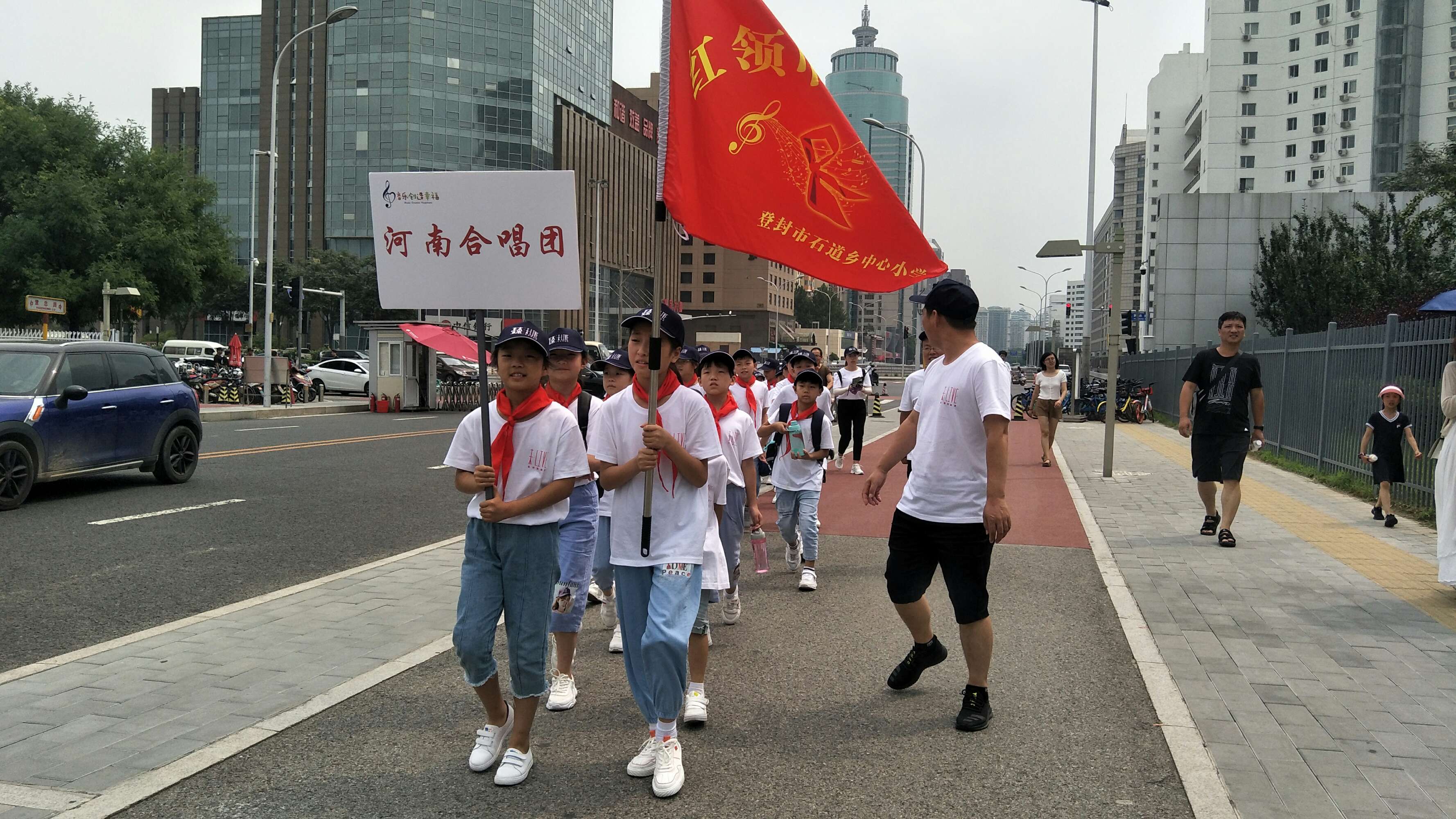 这群10到12岁的小学生,很多是第一次出远门,47个孩子中只要一个去过北京,他们经历了许多第一次:第一次坐火车、第一次住酒店、第一次看到天安门……在排练之外,在主办方安排下,孩子们还游览了天安门、国家大剧院、人民英雄纪念碑等。