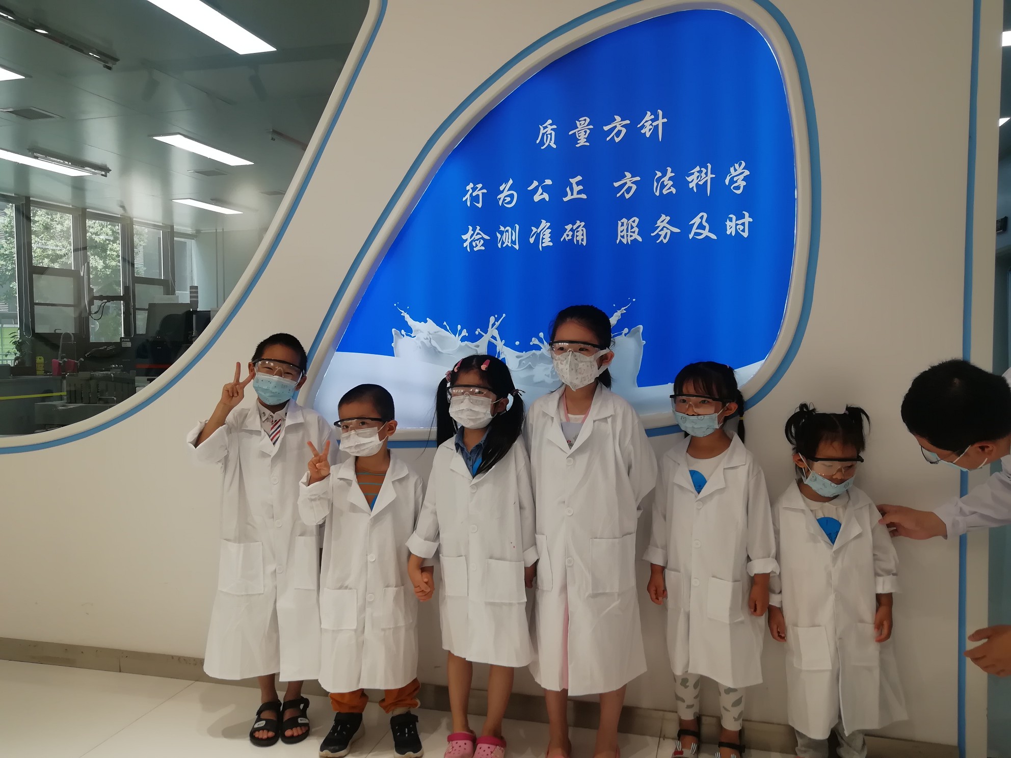 在乳品营养检测实验室,萌娃们穿上白大褂、戴上护目镜,给奶牛做体检,给牛奶做分析。在一台大型乳成分和体细胞分析仪前,孩子们目不转睛地看着机器从发动到搅拌再到测试结果出炉的全过程。“大家看,检测结果很快就出来了。神奇吧?”实验室工作人员不停地与萌娃们互动。
