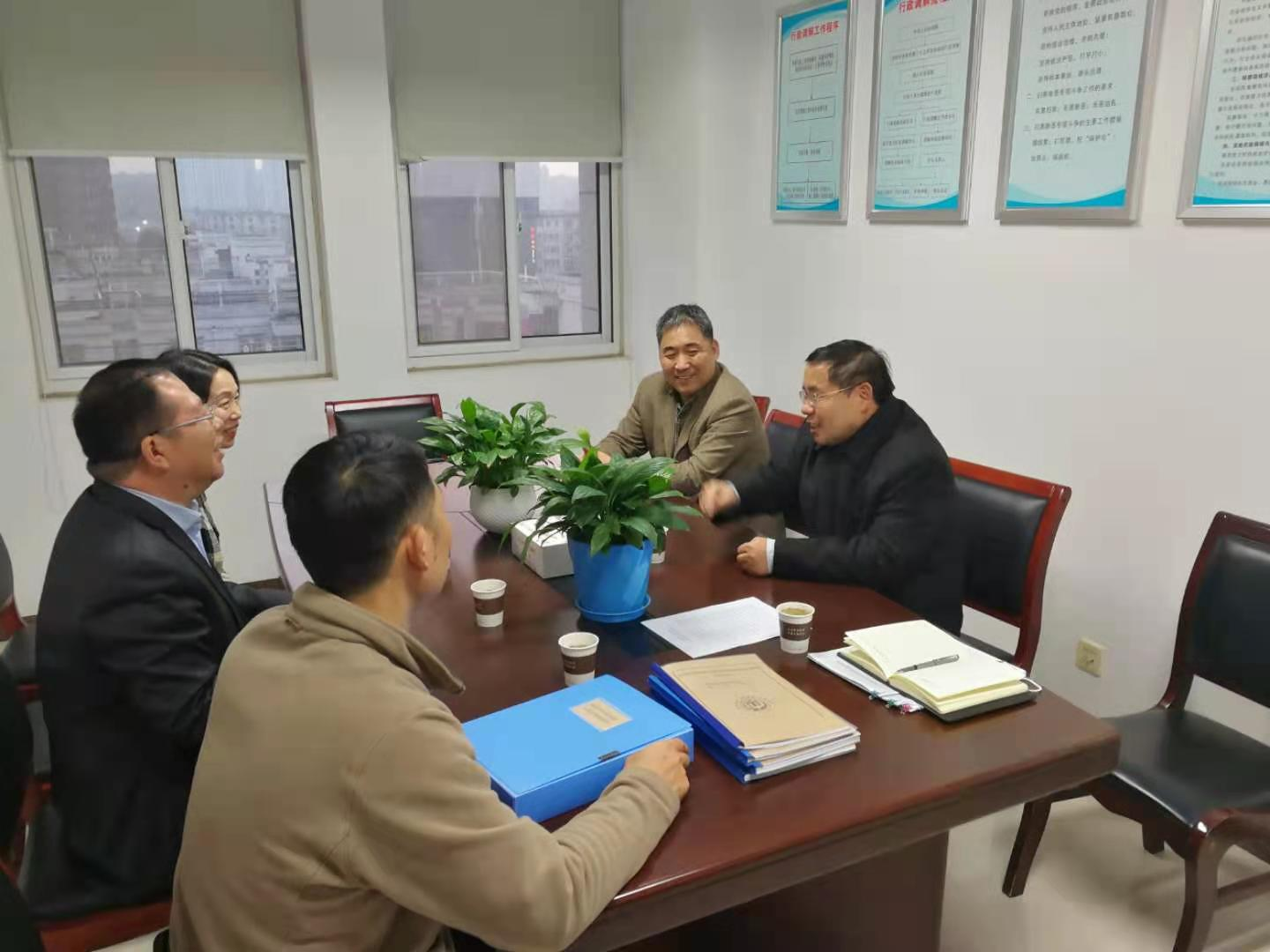 图为督导验收组黄培灵主任(右一)与民政局人员座谈