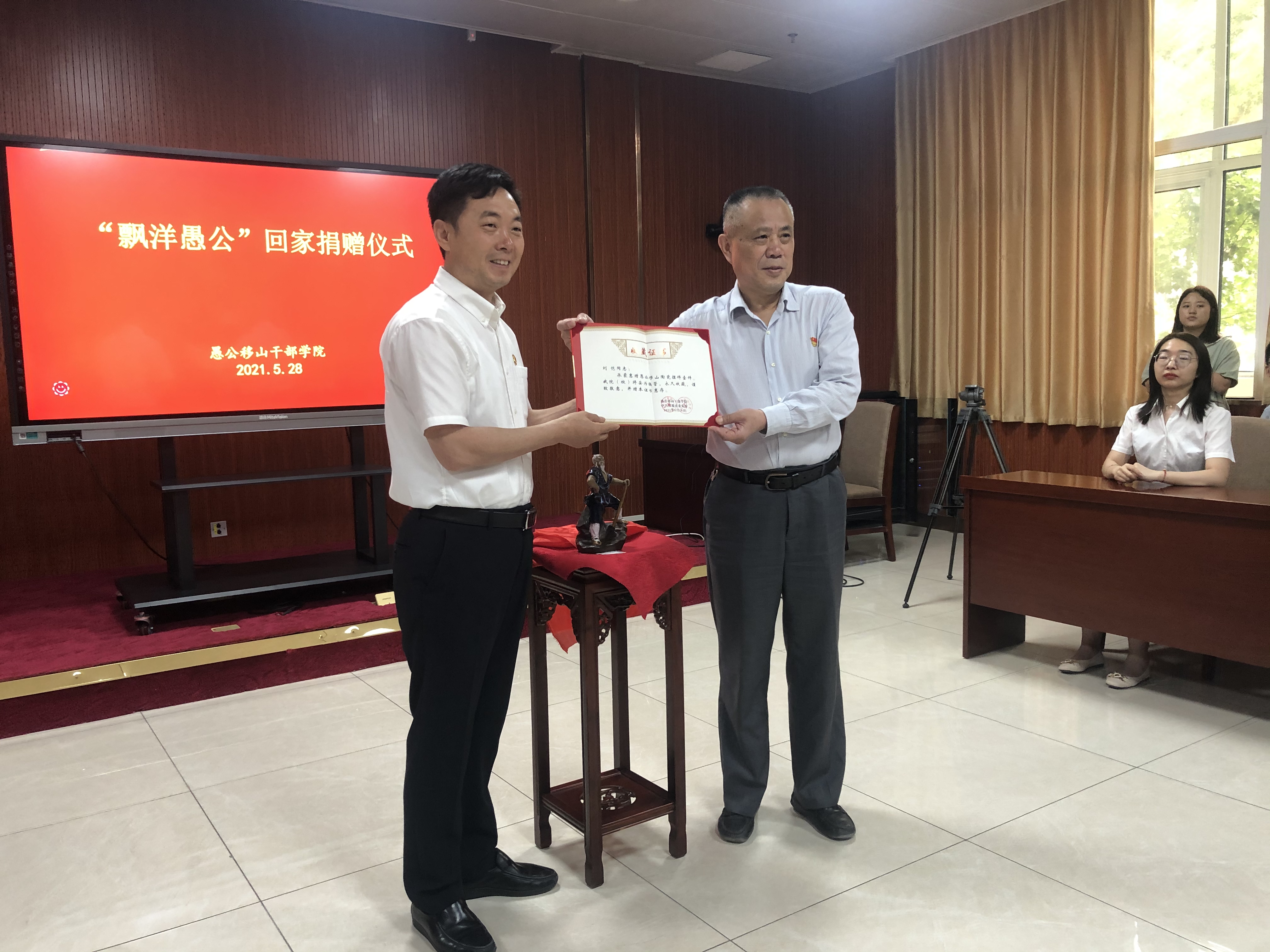 记者了解到,刘泽棉生于1937年,出身于陶瓷雕塑世家。他的陶塑作品注重刻画人体衣纹、筋骨等细节,具有古朴厚重、形神俱佳、色彩丰富等特点,先后被评为中国工艺美术大师和第一批国家级非物质文化遗产项目石湾陶塑技艺代表性传承人。陶塑《愚公移山》是刘泽棉早年时的经典之作。该作品刀法细腻,雕工精湛,纹理清晰,塑造出了中国人民心目中神态刚毅、意志坚韧的愚公形象。“这尊愚公陶塑放到家里,只限于一家人欣赏,但如果放在愚公移山干部学院,不仅对大力弘扬愚公精神有着深远的教育意义,同时可以丰富济源作为愚公故里的精神内涵。”刘恺说。赵会生说,为迎接愚公陶塑回家,进一步提升愚公移山精神文化影响力,同时也为了答谢刘恺先生,故筹办了此次“飘洋愚公”回家捐赠仪式。“愚公移山精神是中华民族的宝贵精神财富,是中国共产党人勇攀高峰的不竭动力。我们要把这件《愚公移山》陶塑珍品保存好、展示好并宣传好他背后的动人故事。”赵会生说。来源:大河客户端 编辑:曲歌