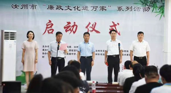 “廉政文化的传播具有直抵人心的力量,‘廉政文化进万家’系列活动还将通过经典诵读、剪纸、微电影、戏剧等载体,推出系列廉政文化活动,通过群众喜闻乐见、寓教于乐的方式,推进廉政文化进机关、进乡村、进社区、进学校、进医院、进企业,把廉政文化送进千家万户,让廉政文化浸润心田,擦亮清廉汝州名片。”汝州市委常委、市纪委书记、市监委主任于伟表示。王诗文