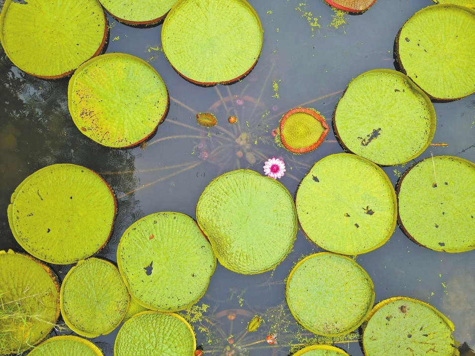郑州市紫荆山公园内的王莲连成一片