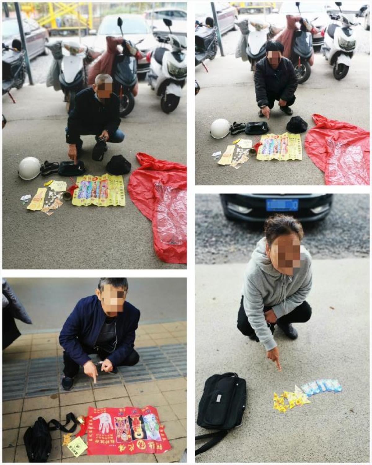 10月8日凌晨,所长熊跃勇、教导员曹营组织民警进行抓捕行动。在分局视频监控中心、刑事侦查大队大力支持下,在郑州大学路等地,一举抓获吴某等12人,扣押作案电动车5辆,并现场查获 “消灾符”、“平安符”、“观音卡”、“黄纸符”等诈骗工具。
