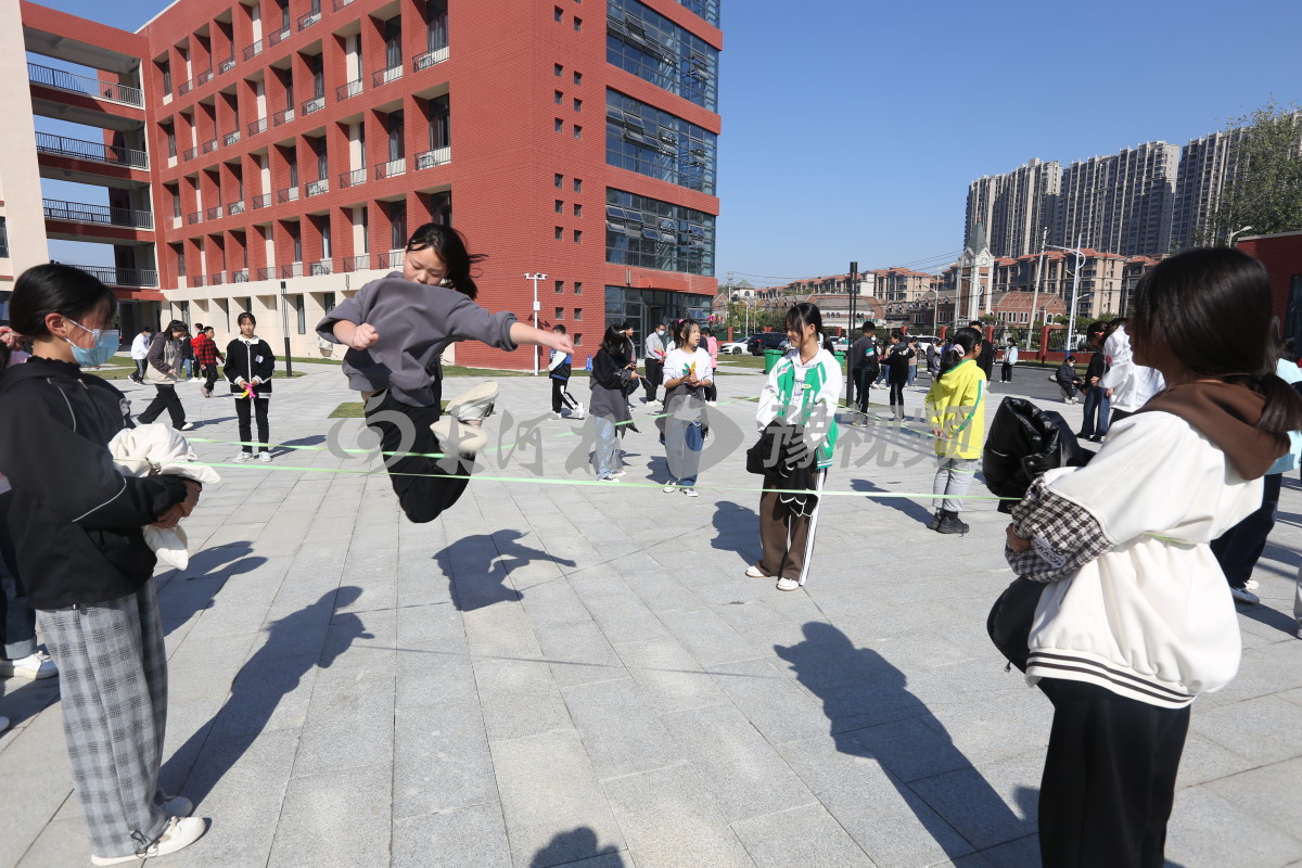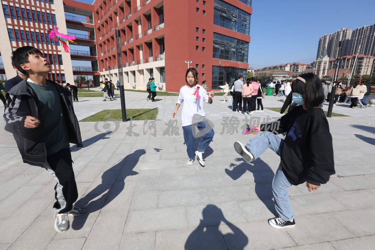 10月11日上午的大课间,周口市城乡一体化示范区桂园路中学的校园沸腾了!三五成群的学生踢着毽子,跳着皮筋,投着沙包,滚着铁环,70、80后的经典游戏重现校园,不仅让现在的孩子们体验了父辈们儿时的乐趣,还给校园平添了勃勃生机。