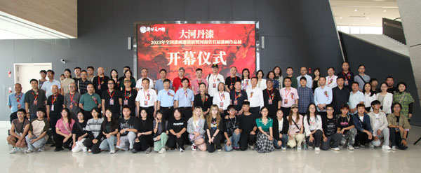 赵素萍、方启雄、胡万欣、张志坚、陈金华、程向军、王向阳、李永清、汤志义共同为“大河丹漆——2023年全国漆画邀请展暨河南省首届漆画作品展”启动开幕。