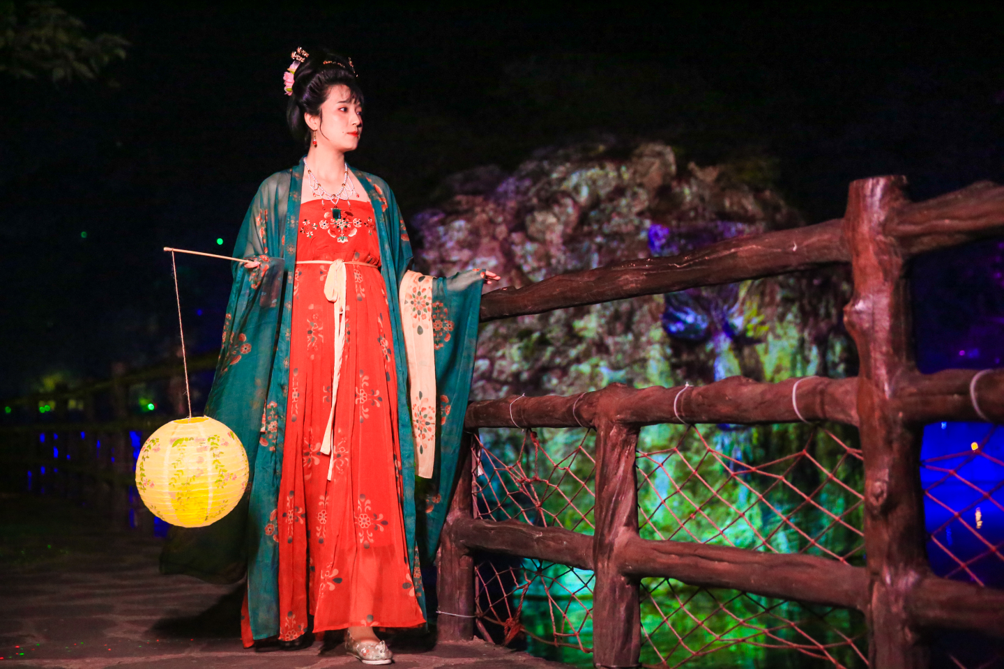 假日期间景区还举办了汉服拜月活动,游客在欣赏云台山夜游的同时,可与手持圆月明灯的汉服同袍共同拜月祈福。