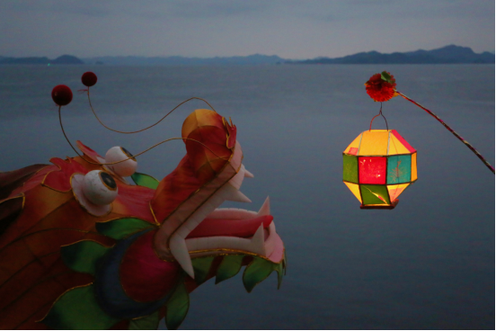 闹元宵,离不开赏花灯和猜灯谜,千岛湖的特色花灯——里商仁灯是当天晚上的主角。这一盏传承了500余年历史的花灯,源自于里商乡走出的明朝三元宰相商辂,如今已是浙江省第二批非物质文化遗产。当天,商辂第二十八代后裔、里商仁灯传承人商振洲专程来到淳安新时代文明实践中心的淳安县博物馆非遗展示厅,向孩子们传授制作仁灯的秘诀。随后,由里商仁灯组成的板凳龙,舞上了夜游船,和游客们零距离互动。
