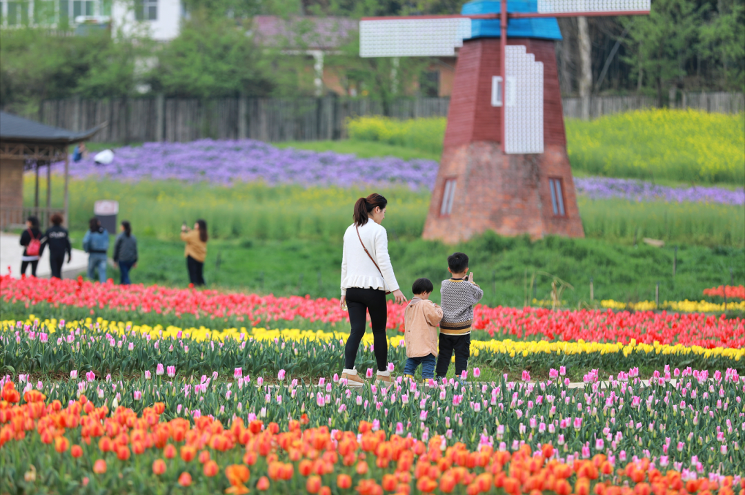 在西九华山东区的花千谷,有风车、盆栽郁金香,还有少女心爆棚的郁金香花海。踏入其中像是闯进了爱丽丝的魔法仙境。