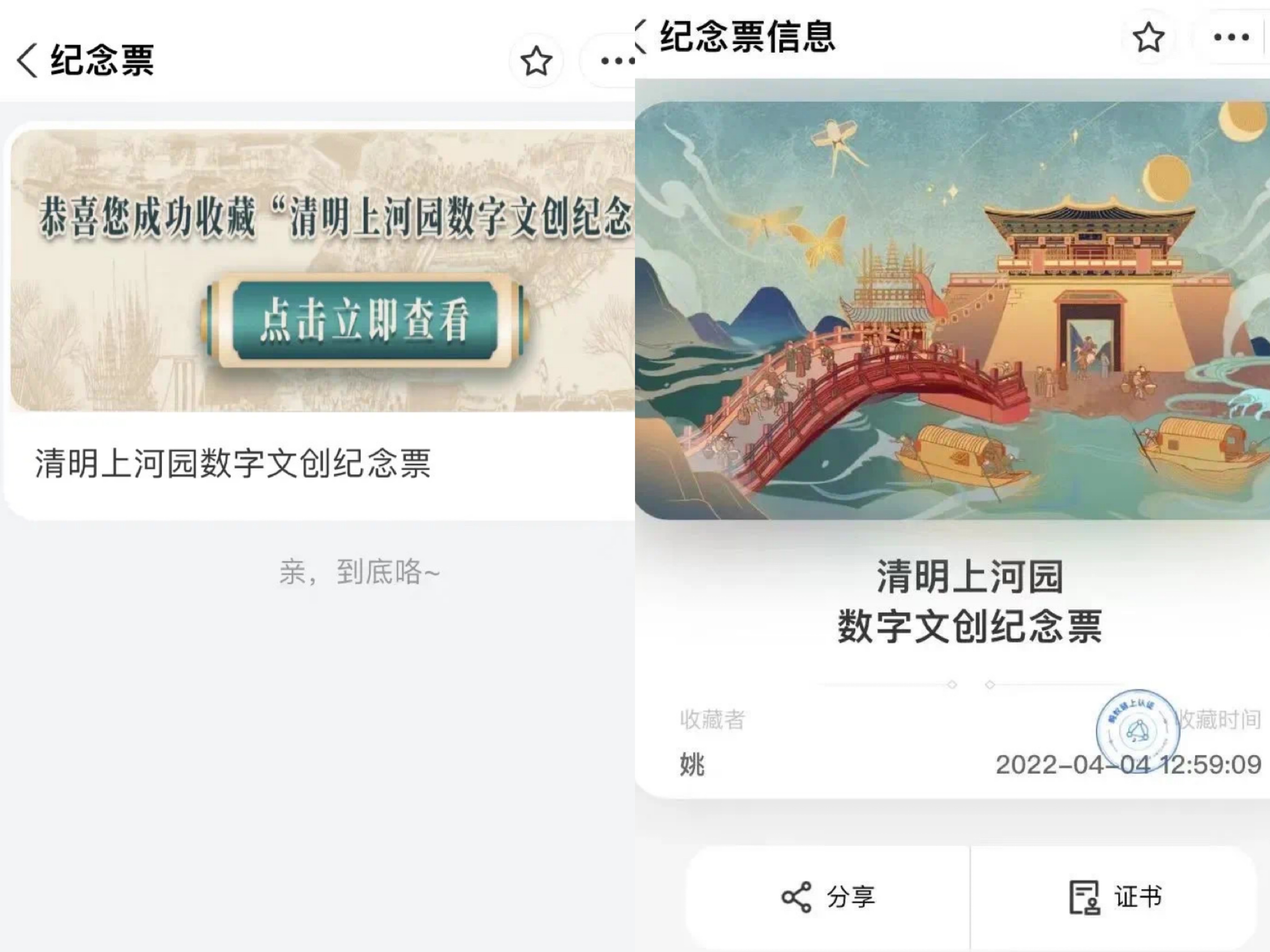 纪念票以动态数字化的效果,艺术性地呈现出北宋都城的城建格局、社会生活和市井风情。还采用蚂蚁链的区块链技术,增强创意产品的文化承载力、展现力和传播力,每个藏品都有专属的序列号,每一个都是独一无二的数字纪念品,通过数字化+艺术性的创新创意将美好永久留存,极具收藏价值。